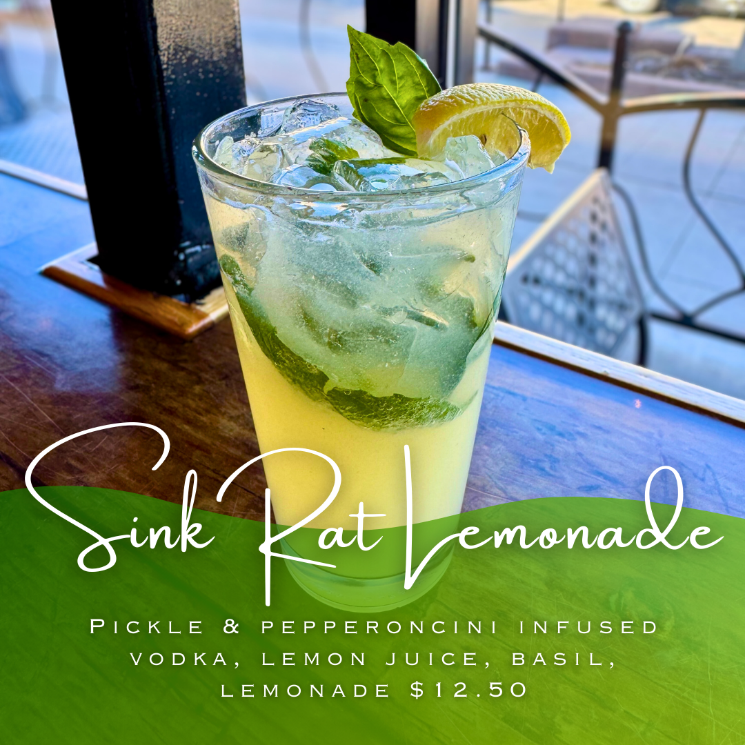 SINK RAT LEMONADE Pickle & pepperoncini infused vodka, lemon juice, basil, lemonade