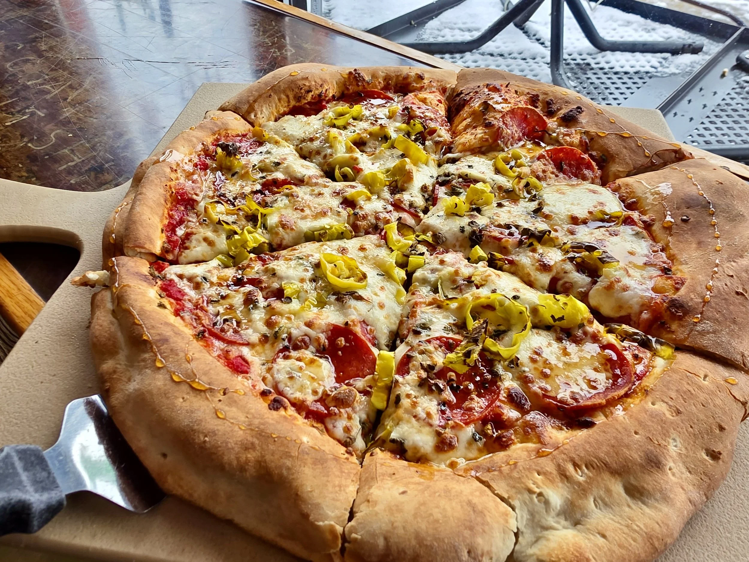 Double pepperoni, pepperoncini, smoked mozzarella, and oregano over our classic tomato sauce, finished with hot honey to hit that smoky, savory, sweet spot all at once
